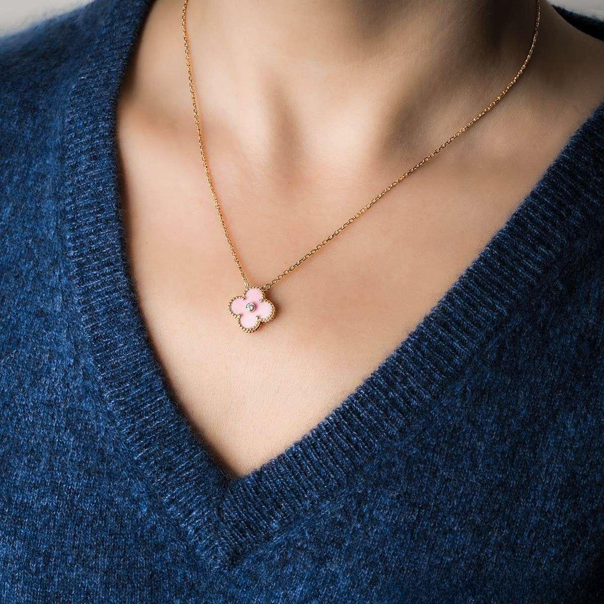 A universal symbol of luck and grace, the clover design moves effortlessly from casual wear to evening style. Whether worn on its own or layered with other necklaces, it adds a refined pop of color and understated luxury to any jewelry collection.