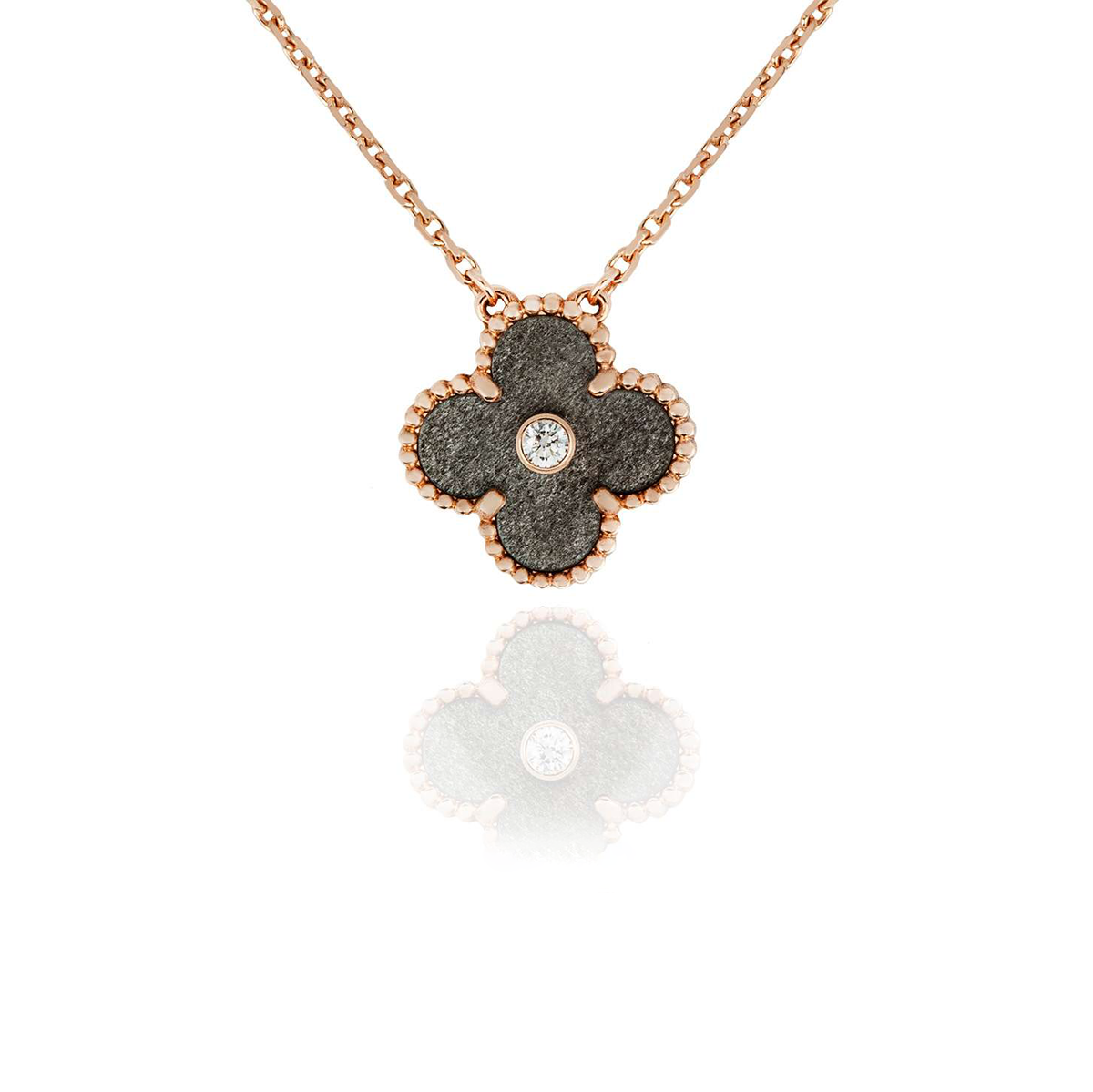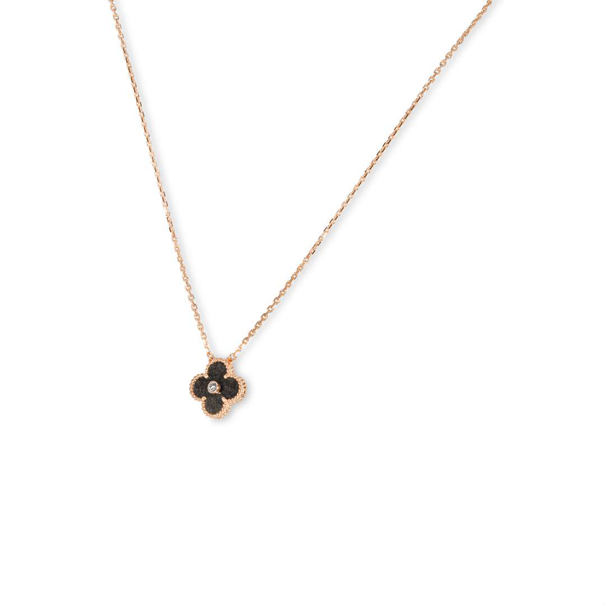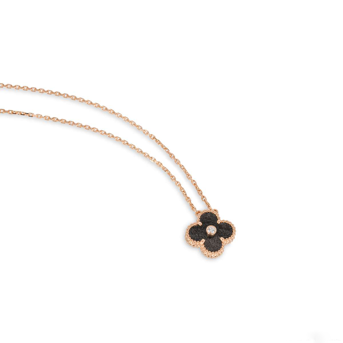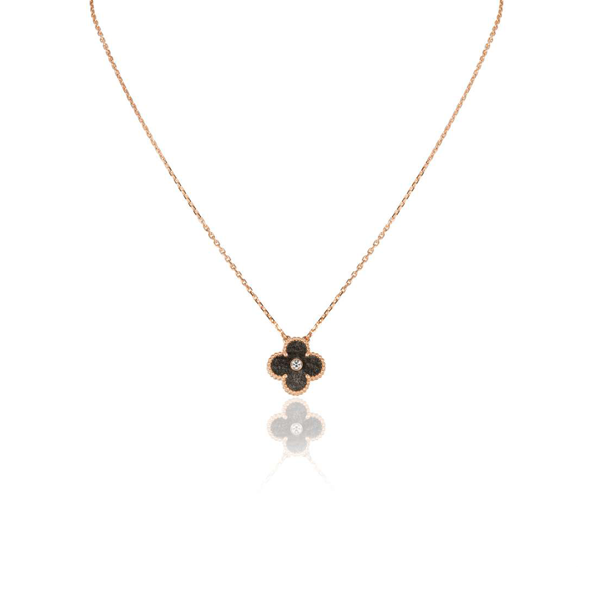 Long celebrated as a symbol of luck, balance, and eternal beauty, the clover design makes this piece as meaningful as it is luxurious. The sophisticated pairing of cool-toned obsidian and glowing rose gold creates a striking harmony—ideal for both everyday elegance and evening refinement. Rare and collectible, this pendant captures the spirit of limited-edition craftsmanship, blending timeless symbolism with contemporary grace.