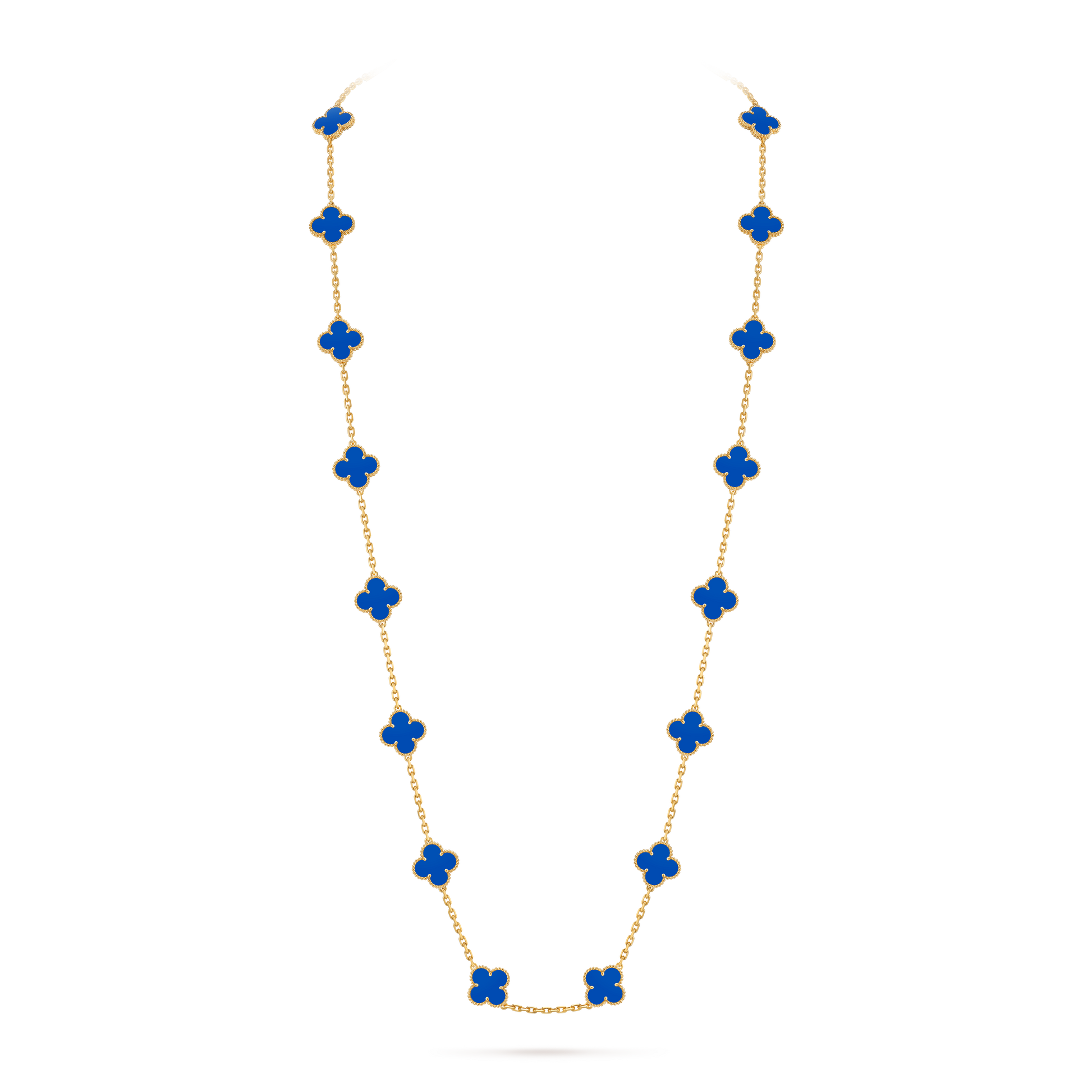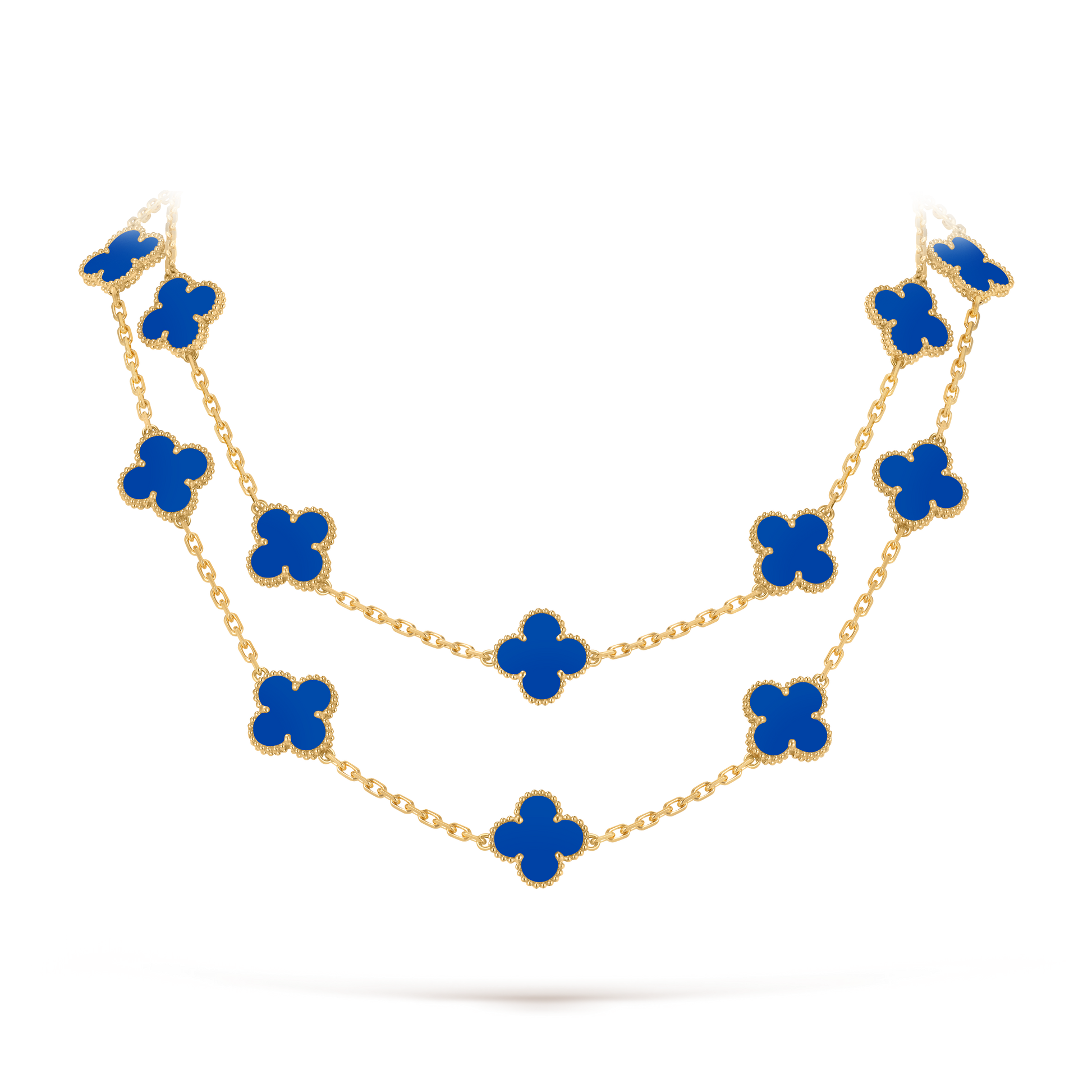 A statement of grace and sophistication, the Lucky Clover Long Necklace features twenty delicately crafted clovers, elegantly linked to create a flowing silhouette of timeless charm. With double the motifs, this piece embodies abundance, luck, and beauty in every detail.