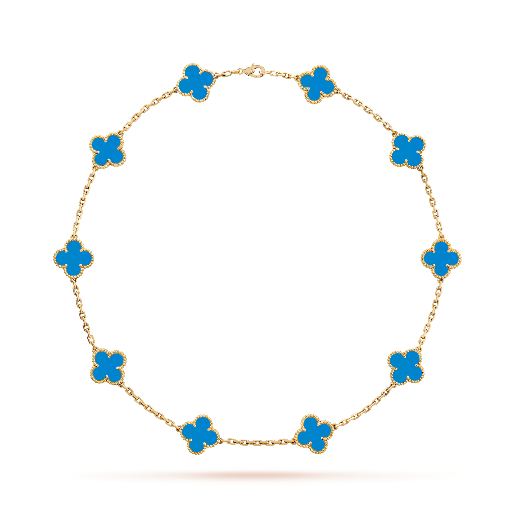 A statement of elegance and charm, the Lucky Clover Necklace features ten delicately crafted clovers linked together in perfect harmony. Each clover symbolizes good fortune and timeless beauty, creating a graceful piece that enhances any outfit.