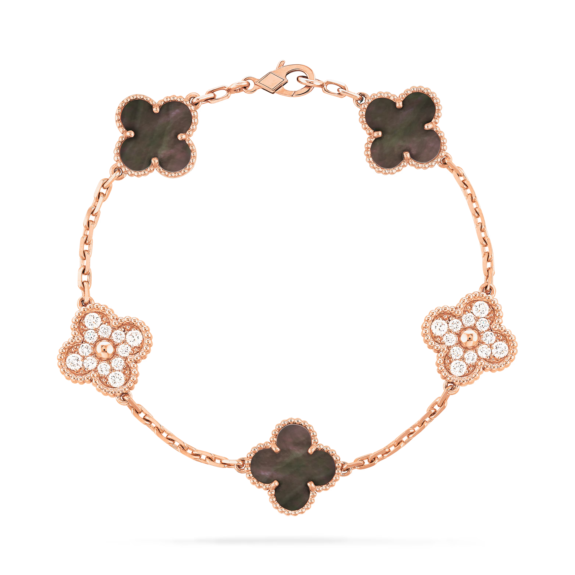 Black Mother-of-pearl & Diamanté Lucky Clover Bracelet