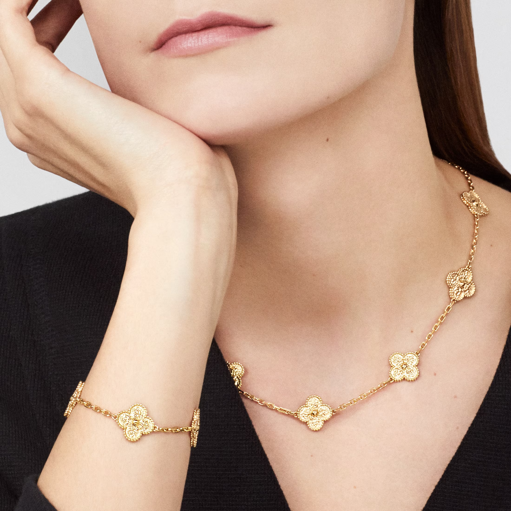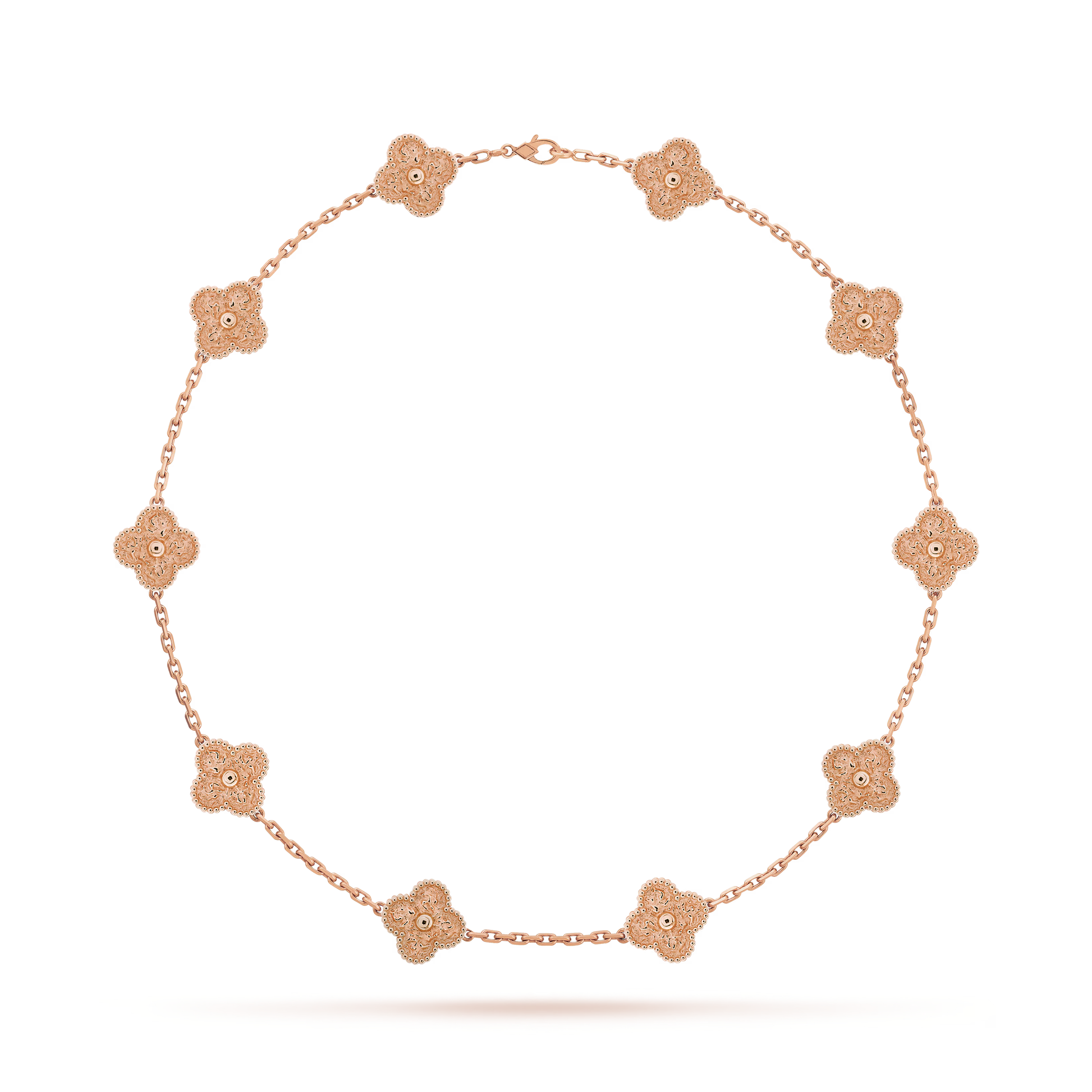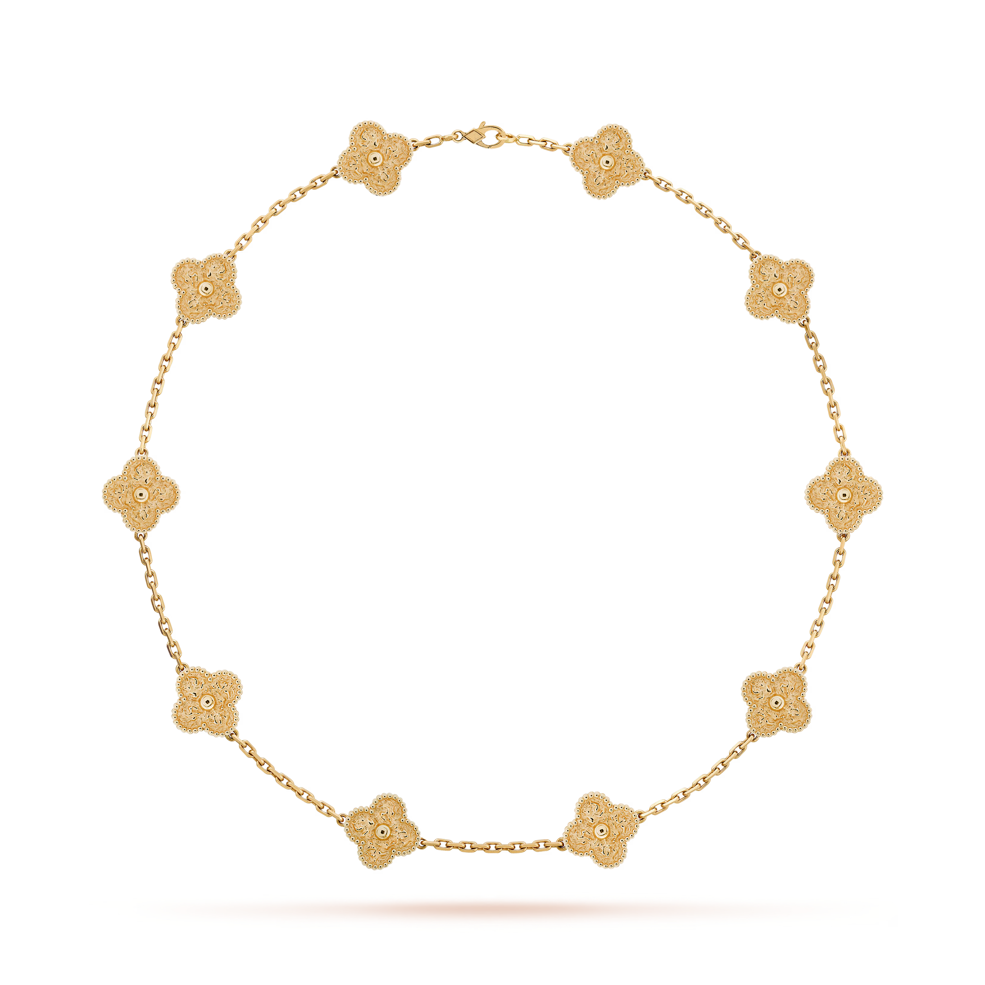 A statement of elegance and charm, the Lucky Clover Necklace features ten delicately crafted clovers linked together in perfect harmony. Each clover symbolizes good fortune and timeless beauty, creating a graceful piece that enhances any outfit.