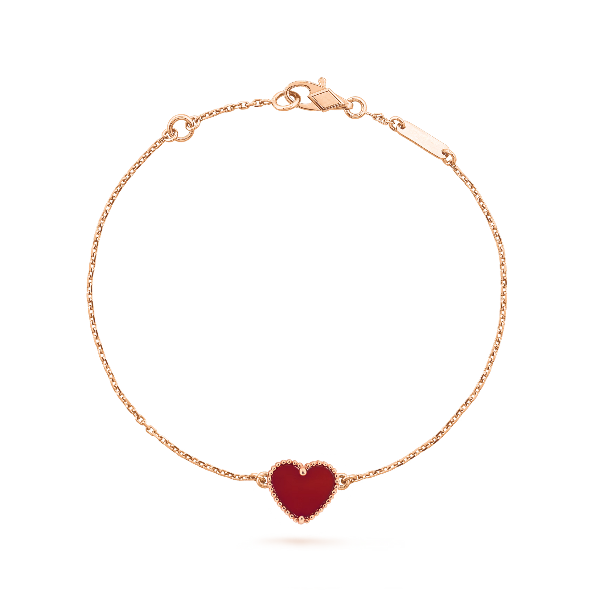 Graceful and symbolic, the Roselle Heart Bracelet embodies the essence of love and warmth. Featuring a radiant Carnelian heart charm, it glows with passion and confidence — delicately bordered by a fine rose-gold beaded setting that adds a soft, romantic shimmer.