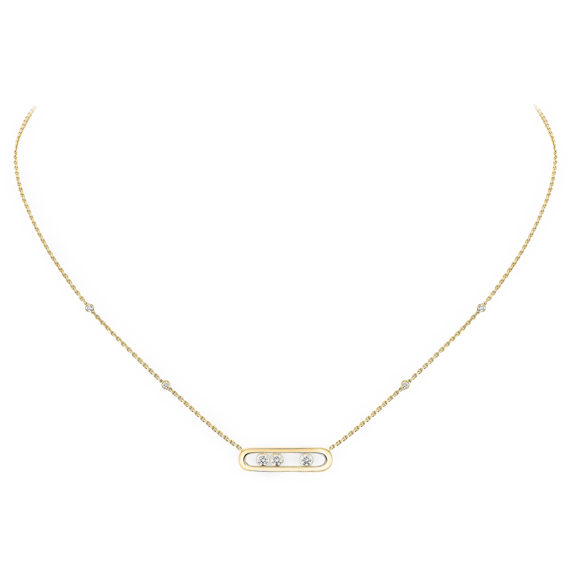 The Motion Necklace brings effortless elegance to your everyday look. Featuring a sleek polished bar paired with a signature sliding element, it creates a soft, captivating shimmer as it gently moves with you throughout the day.