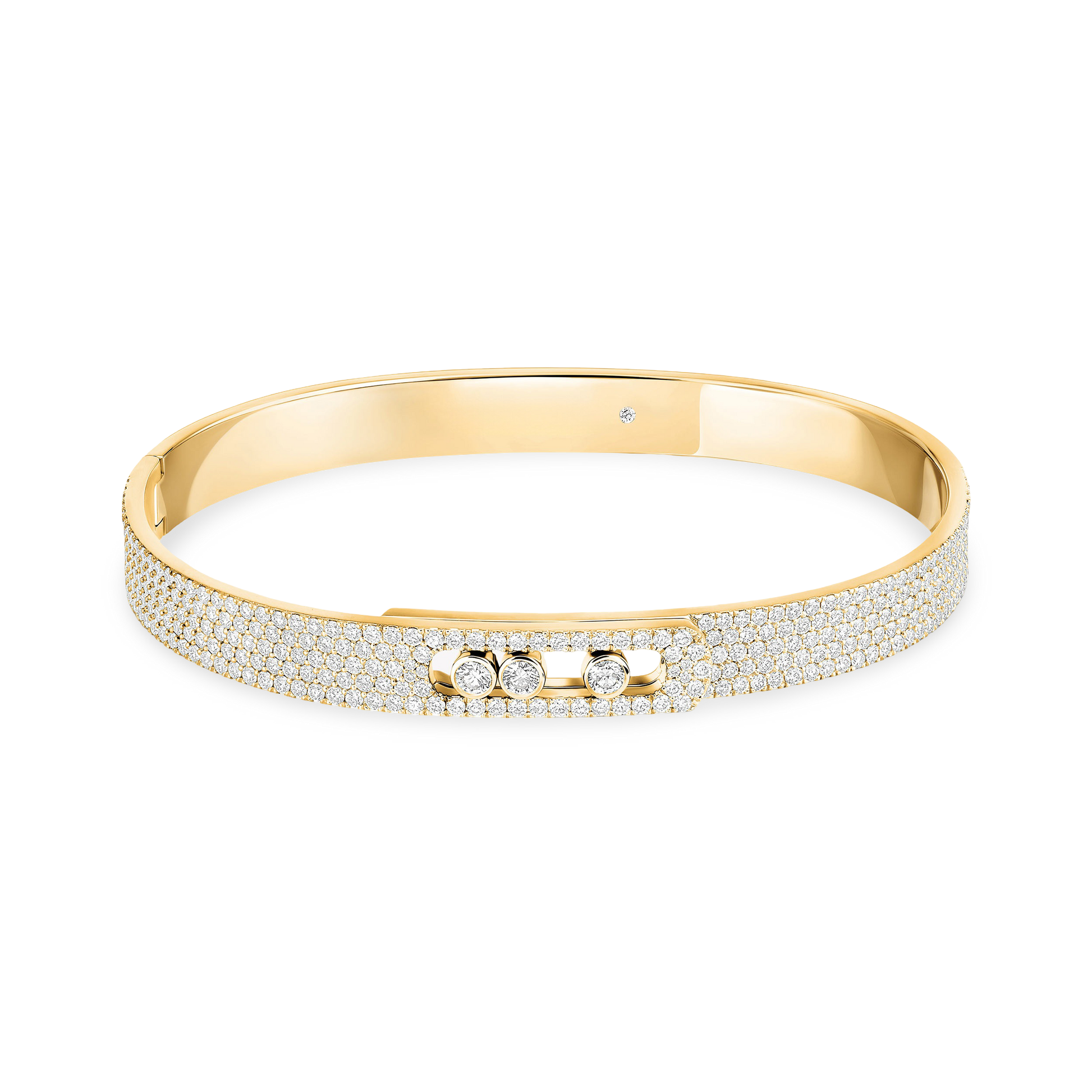 Whether worn alone for a bold statement or stacked for added sparkle, the Trio Motion Bangle is a timeless piece that elevates any jewelry collection with its effortless sophistication.